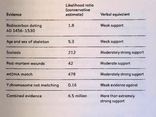 We might assume that a skeleton found were the remains of Richard the III if all of the following were true: